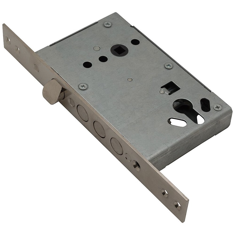 ОписаниеЗамок врезной под цилиндровый механизм с защелкой, предназначен для установки в металлические двери. Количество ригелей - 3, вылет ригелей - 22.8 мм, количество точек запирания - 1.
